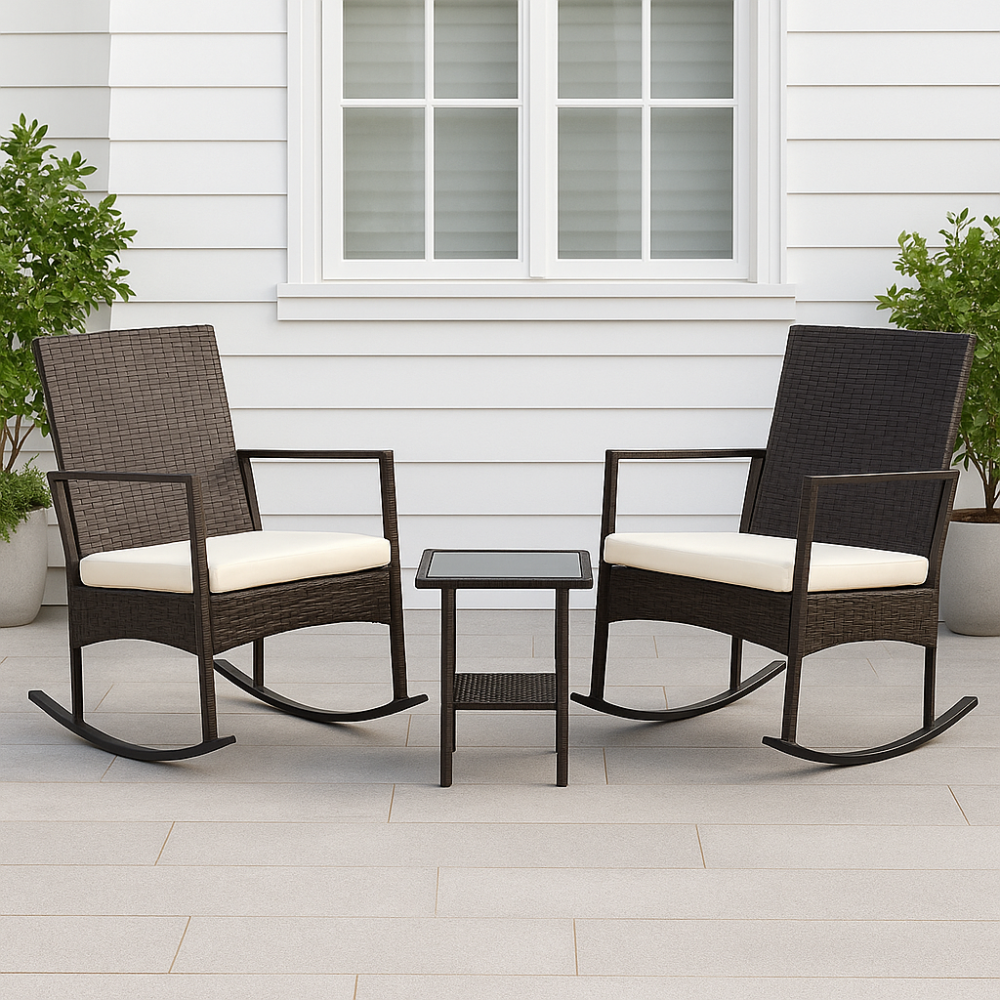 استمتع بأوقات مميزة في الهواء الطلق مع جلسة خارجية أنيقة من نافيرا هوم، تجمع بين الراحة والتصميم العصري. تتضمن الجلسة مقعدين بتصميم هزاز مريح وطاولة بسطح زجاجي أنيق، لتجعل لحظات الاسترخاء في الحديقة أو الشرفة أكثر متعة.