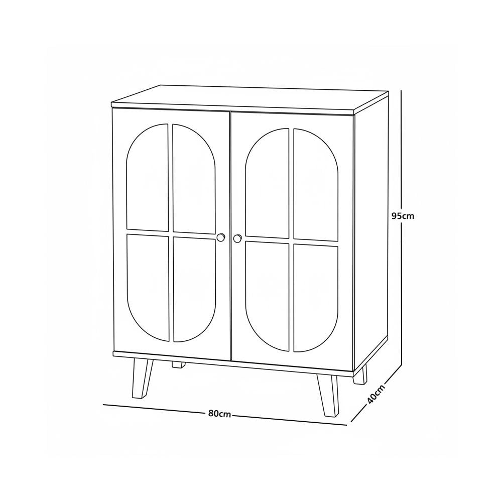 يأتي الدولاب بأبعاد مثالية (عرض 80 سم × ارتفاع 95 سم × عمق 40 سم) مما يجعله مناسبًا للمساحات الصغيرة والمتوسطة، مع خامة خشبية متينة تدوم طويلاً وتضفي لمسة راقية على ديكور منزلك.