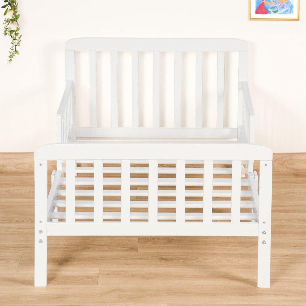 سرير أطفال خشبي – راحة وأناقة بلون أبيض ناعم