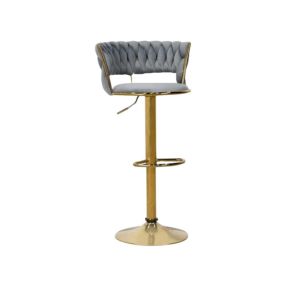أضف لمسة من الفخامة العصرية إلى مساحتك مع كرسي البار القماش المخمل الرمادي من نافيرا هوم.