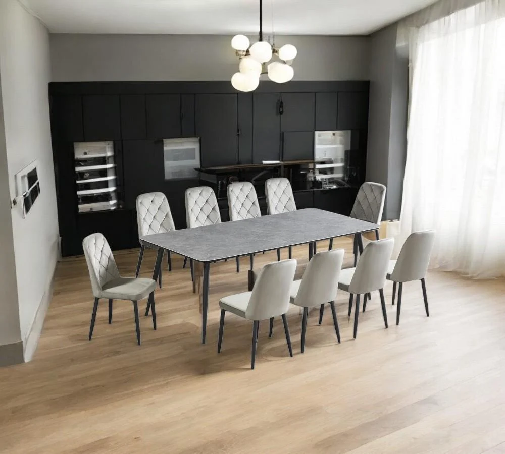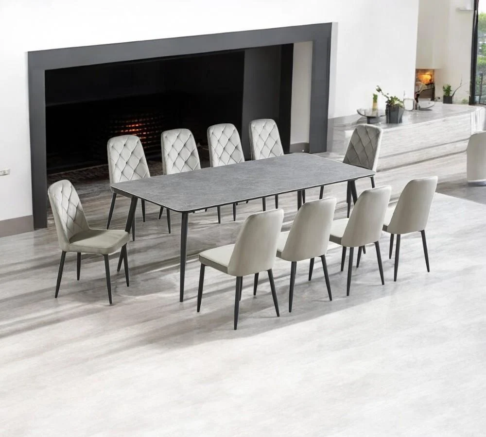 طاولة طعام سيراميك 10 كراسي - رصاصي
